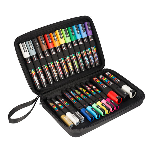 The Uni Posca markers is one of our most popular markers and therefore we always have a huge selection and competitive pricing. Posca was one of the pioneers when it comes to paint markers, their first markers was introduced to the market in the eighties and quickly grew in popularity due to the opaque paint that could write on any surface. The water-based paint is permanent and perfect for writing and decorations on canvas, paper, stones, wood, glass, plastic and metal. Dark surfaces is no problem since light colors covers dark and vice versa, this is probably why it got so popular amongst graffiti writers also.