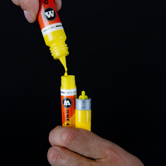 Tyske Molotow står for innovation og har siden midt i 90’erne produceret både spraymaling og tuscher. Molotow indså tidligt, at grafittikunstnere ikke bare maler med spraymaling, og i dag har virksomheden et bredt sortiment af tuscher til alle mulige formål. Molotow ONE4ALL er virksomhedens absolut mest populære produktserie, som tillader dig at blande mange forskellige teknikker – alt fra airbrush og tuscher til spray og pensel.