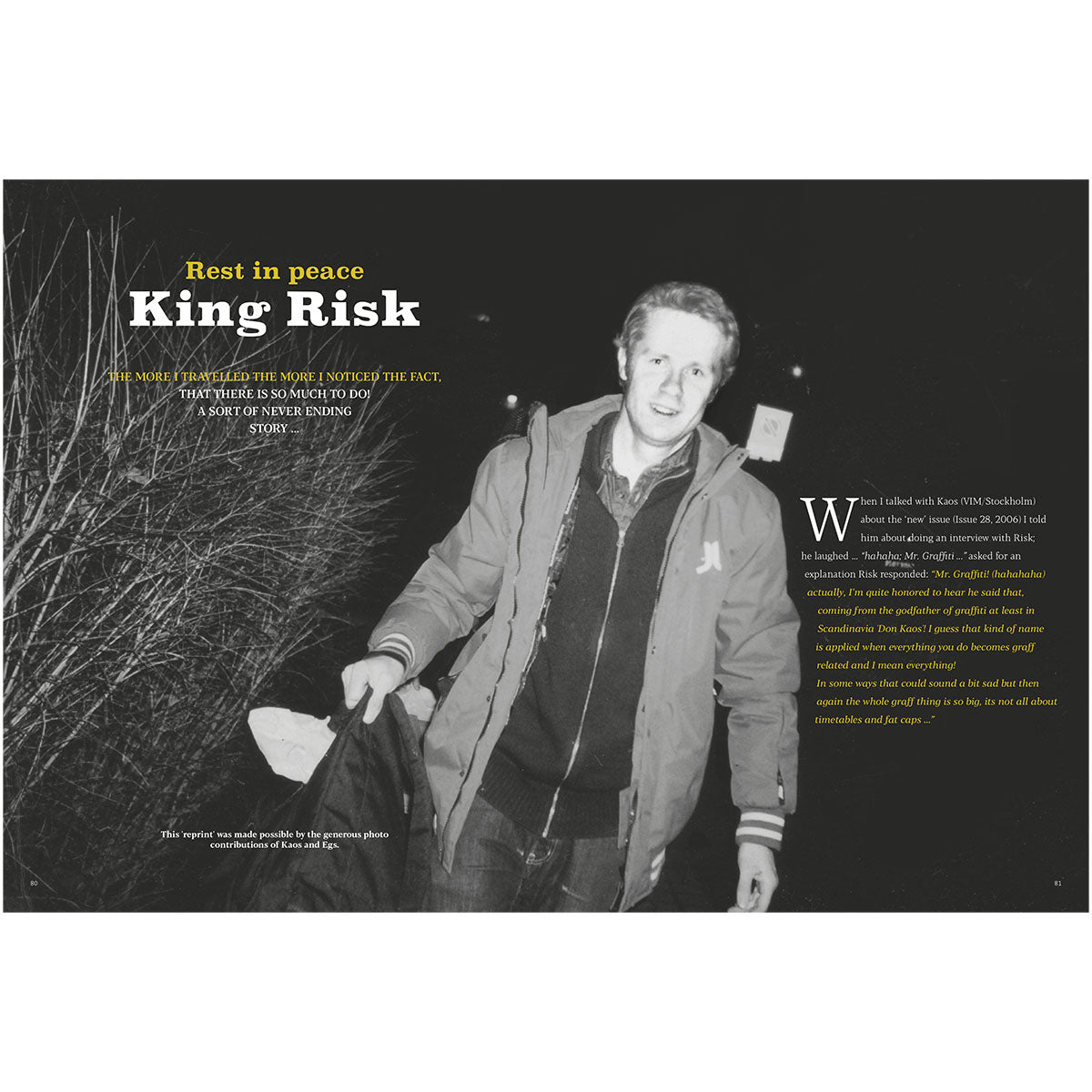 The 30 years anniversary issue is a 1kg beast with 320 pages covering the best from the world of graffiti. With special features including graffiti writers such as: Furious, Rhyme, Dart, Smet, Suicide, Risk (R.I.P), Sales, DEFS, GBR, FOFS, NER, Skel and many more!