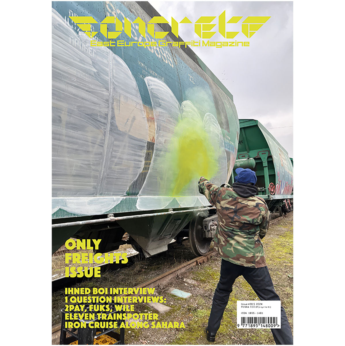 We present a limited edition entirely dedicated to the art of freight train painting. For this issue, we invited some of the most active writers in this field from Eastern Europe. It features names that have not been published in our magazine before. Inside, you'll find interviews with 2pay, IHNED, Fuks, Wile, and spotter Eleven, as well as Ste1's report from his travel through the Sahara desert on a freight train.