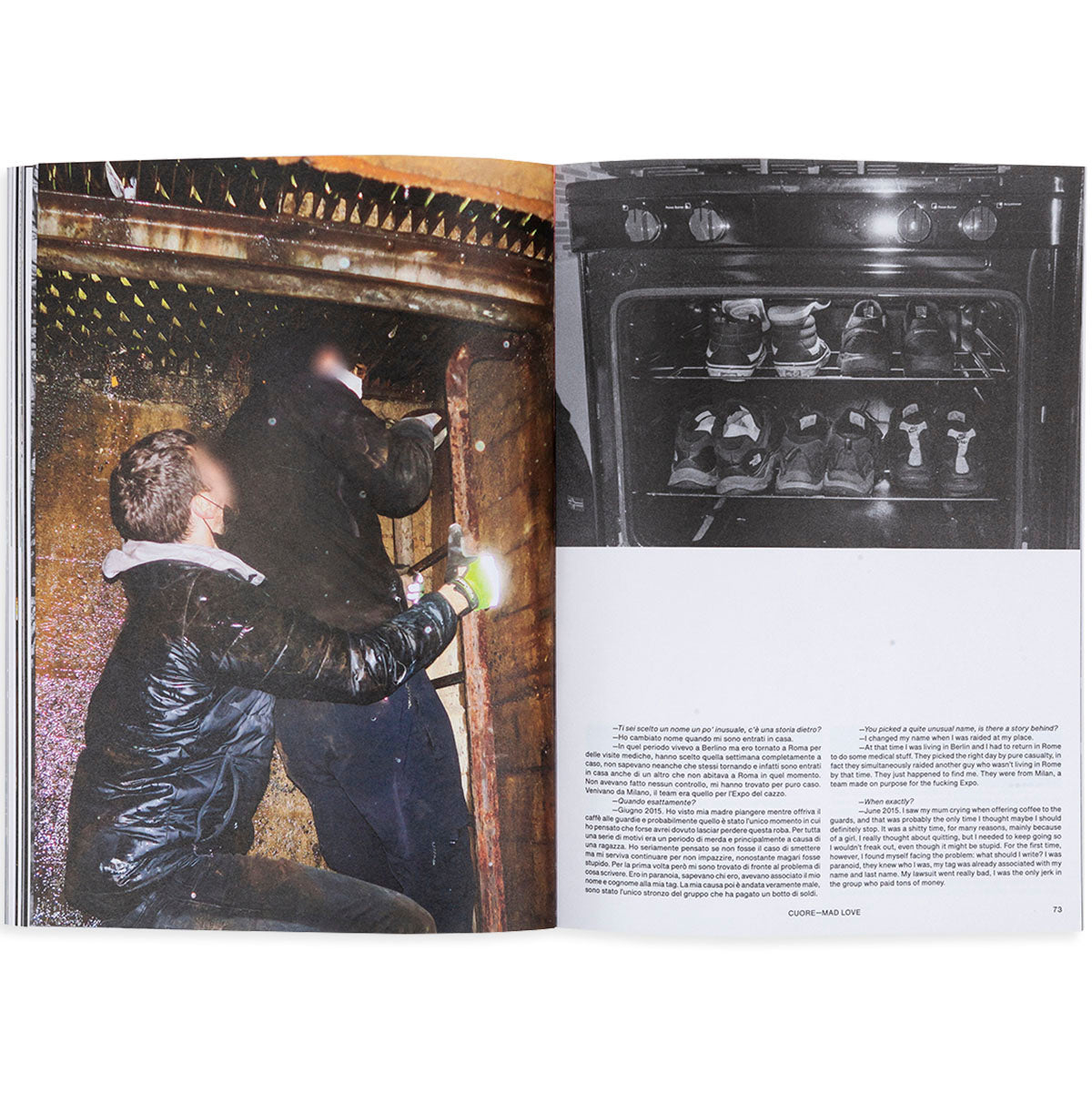 "For the first time, however, I found myself facing the problem: what should I write? I was paranoid, they knew who I was, my tag was already associated with my name and last name. That was a strange period because I had slightly lost my identity, right? This graffiti thing where you should push your name, the name is everything, and I didn’t have a name anymore. I didn’t know what to write. I spent about two years writing bunch of crazy things and, among them, 'Cuore'.—[Heart].—I hadn’t given it much importance but it was something related to the feeling, the passion, the fact I’m putting my heart in this thing. I stuck with that name, I liked the way it sounded, and the fact it’s almost like a sentimental concept, like 'I’m not playing'. I put everything into this. It’s my life".