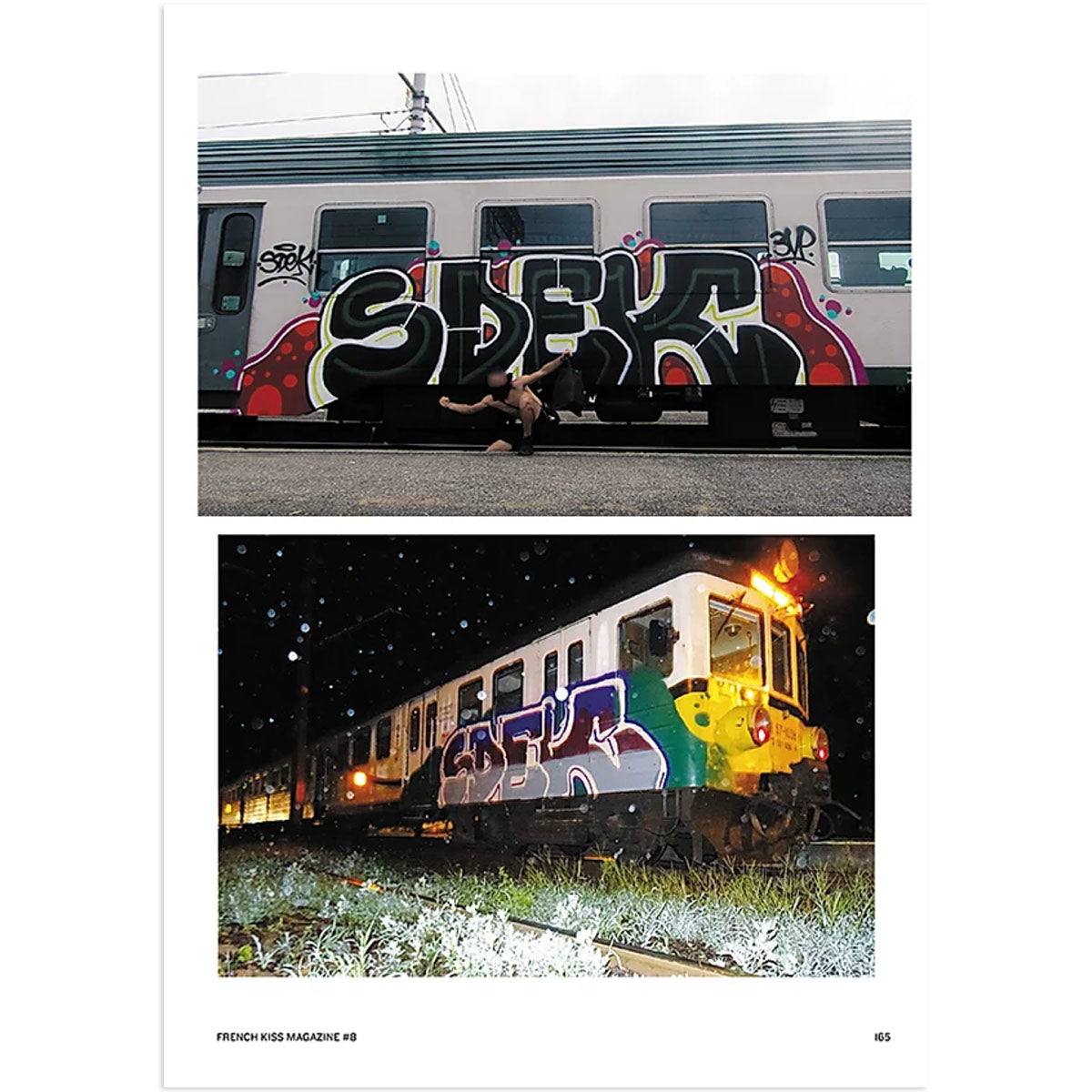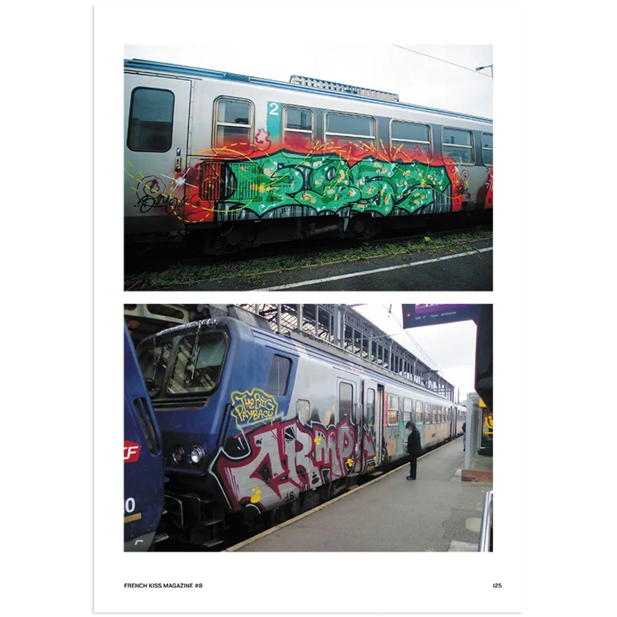 180 pages with only painted trains and metros from the whole world nicely package in a glossy finish. Special features with writers such as Quiet, 7FA7, Sdek, Puser, Oeuf, Klima, Sany, Jade and Photographer Zucker.