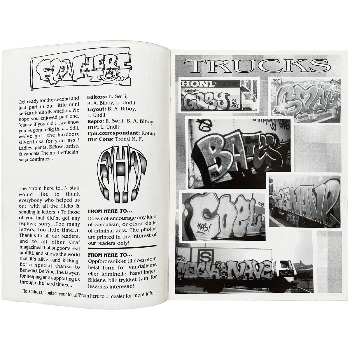 Super rare magazine from 1994! From Here To Fame is another Norwegian magazine and one of the pioneers in printed graffiti media. From a time when people traded analogue photos by snail mail and to get your hands on a printed graffiti magazine was only possible if you were lucky and living or visiting a capital city. From Here To Fame Magazine 5 is a silver special issue which is great cause the magazine is printed in all black and white. The magazines are in good condition but as always with old magazines and books there may be small scratches.