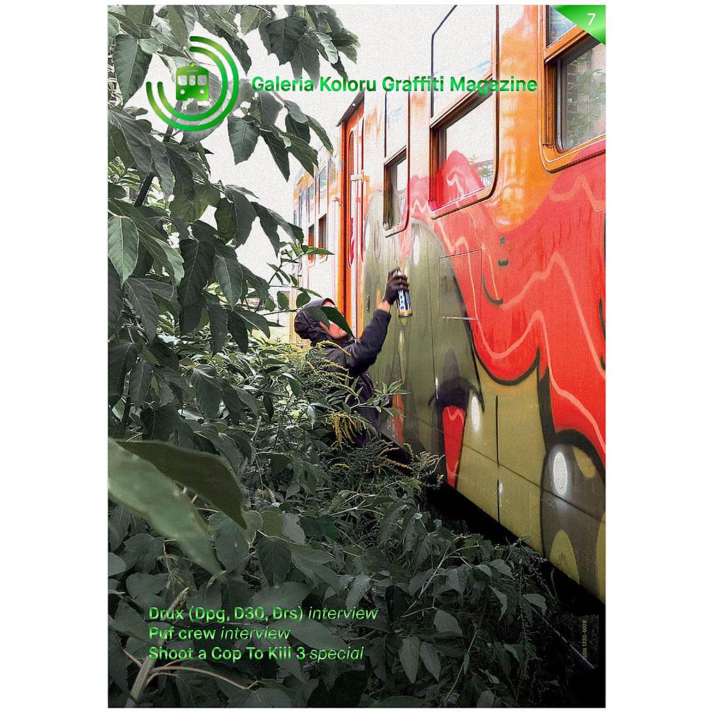 The Galeria Koloru #7 Magazine is full of trains, freights, metros. Basically everything the European world of graffiti on steel has to offer. On more than 200 pages rolling steel from all over Europe are portrayed and some specials with writer Drux and the PUF Crew tell witful anecdotes and show their stuff.