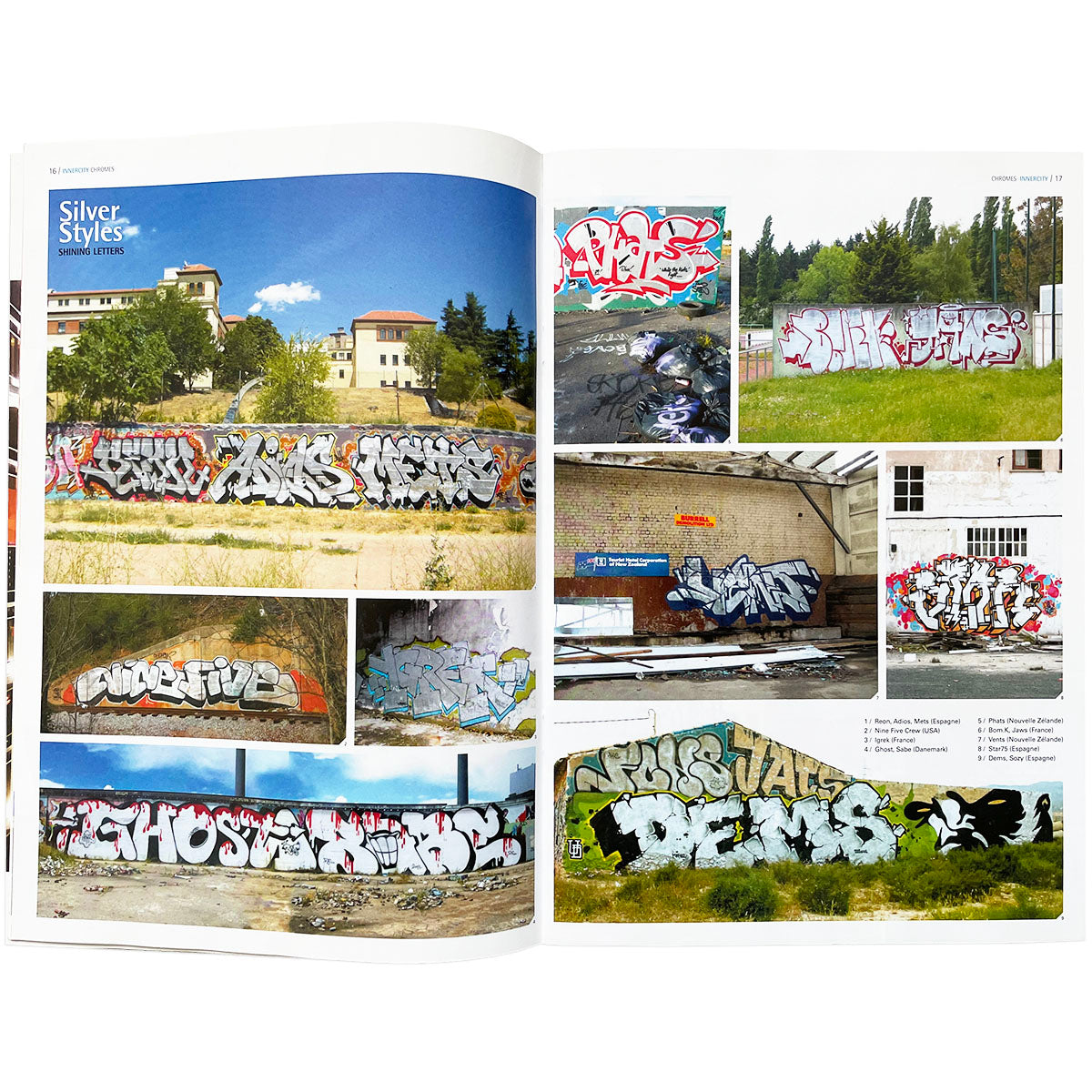 The french magazine Innercity offers a great mix of burners, walls, blackbook drawings and tags. A great magazine for style writers with top quality content and a great mix of quick tags and colorful masterpieces. This issue was released in 2009 and features: Wildboys (Neaple), Bears (Paris), Star75, Robof One (Italy).