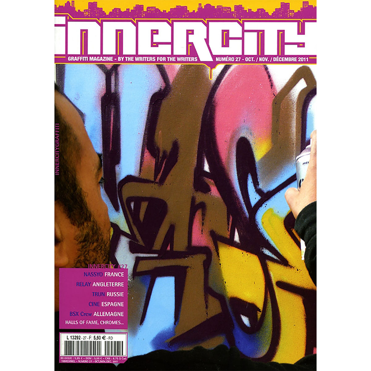 The french magazine Innercity offers a great mix of burners, walls, blackbook drawings and tags. A great magazine for style witers with top quality content and a great mix of quick tags and colorful masterpieces. This issue was released in 2011 and features: Nassyo (France), Relay, Trun (Russia), Cine (Spain).