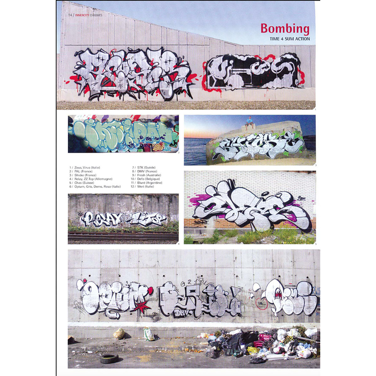 The french magazine Innercity offers a great mix of burners, walls, blackbook drawings and tags. A great magazine for style witers with top quality content and a great mix of quick tags and colorful masterpieces. This issue was released in 2011 and features: Profecy (FR) Musa (Spain), Druid, PSA Crew and a special with the Spray Beast blog.