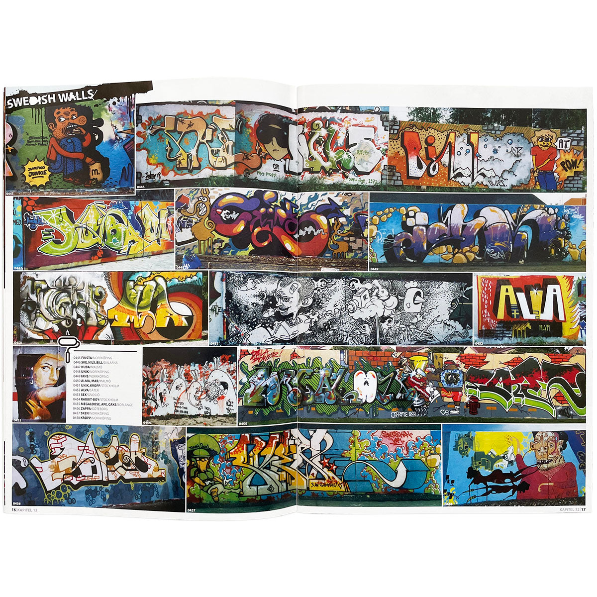 Issue 5 of Kapitel 12 magazine is packed of Swedish graffiti painted on trains, walls and subways across the country. This issue have special features with writers Vision Y2K Crew, Finsta, F-ups and Klister-Peter. Also a ton of pages filled with trains, subways, trams, bombing and walls.