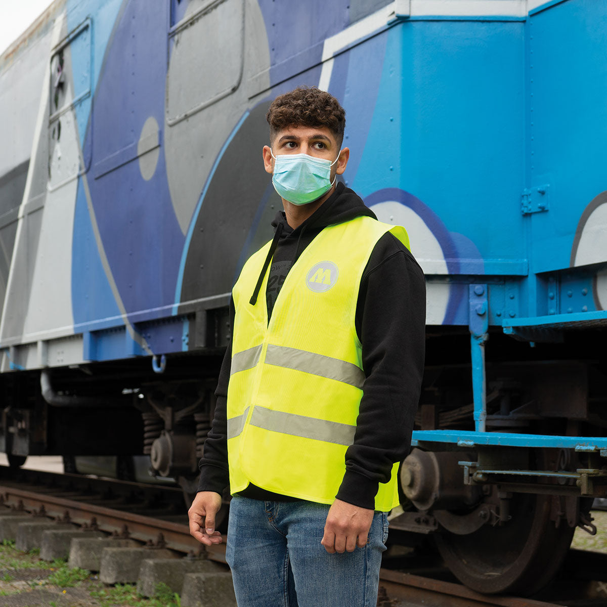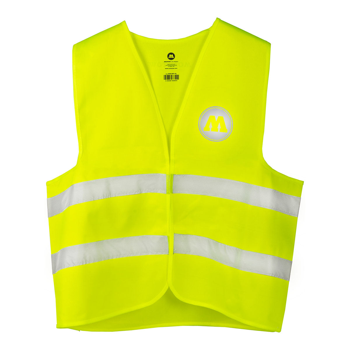 Safety first! Reflective vest made of fluorescent yellow fabric. The vest has two stripes and a small Molotow logo printed with reflective paint. Perfect when you want to be visible in the dark.