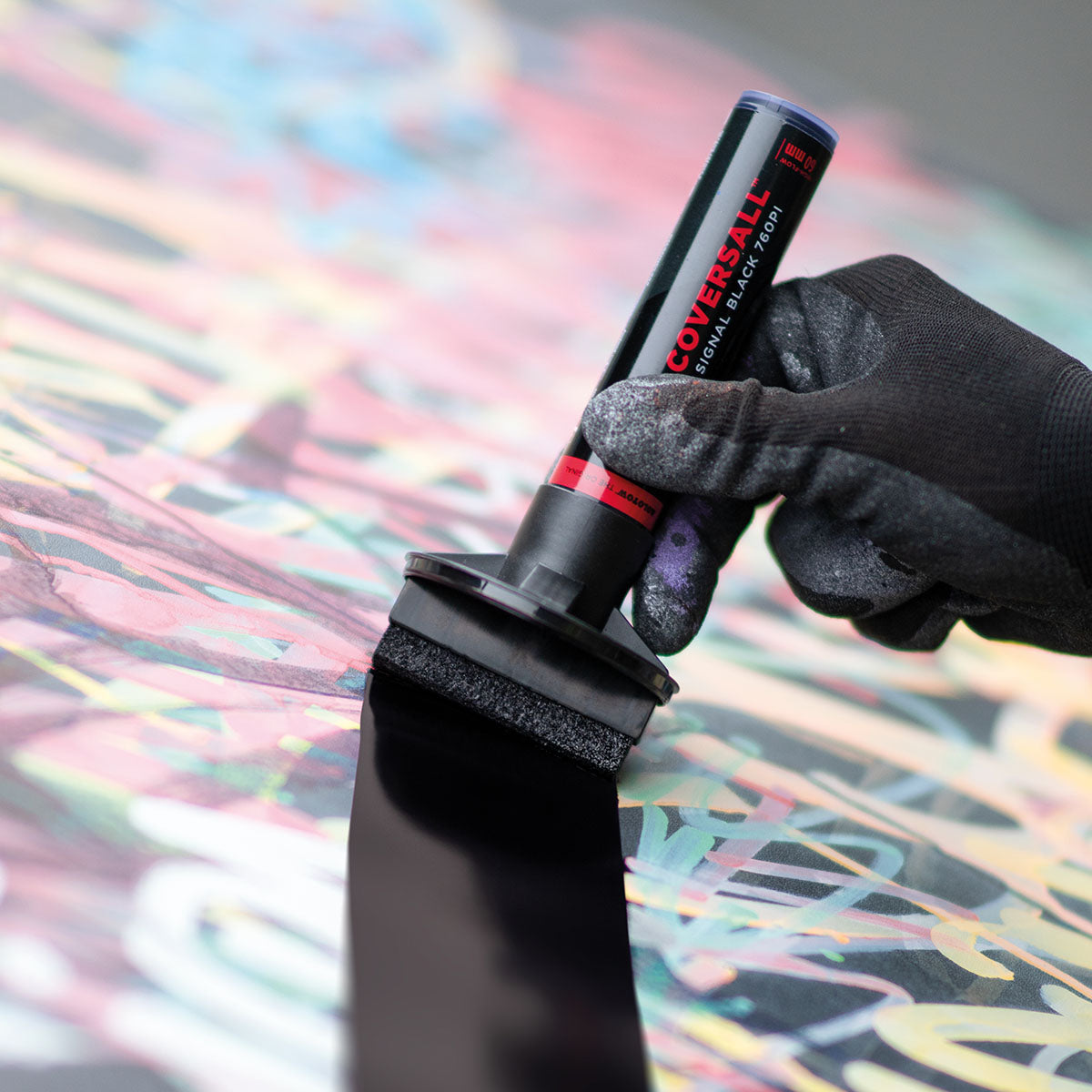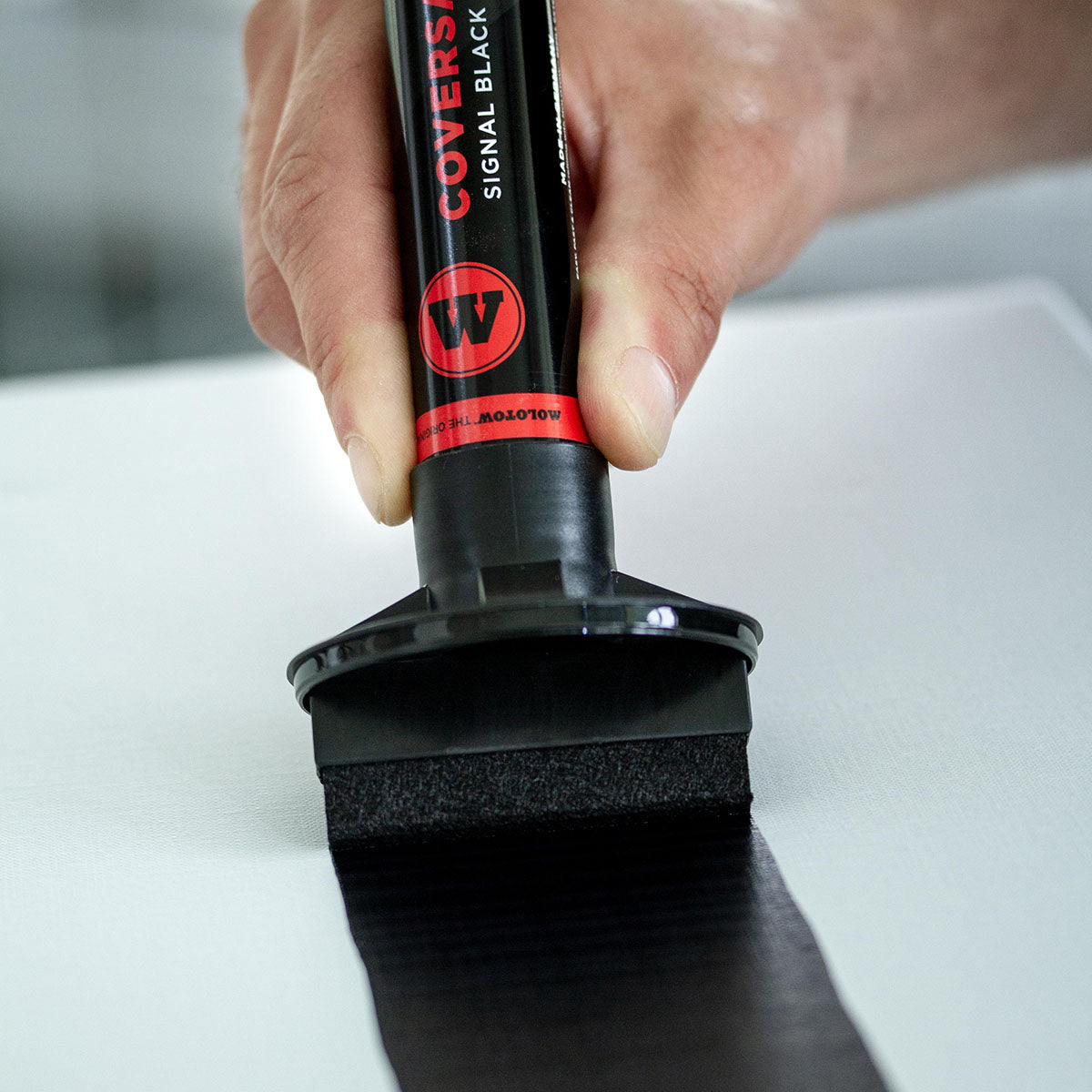 Equipped with the patented Flowmaster pump-valve and filled with the pitch black COVERSALL ink makes it your perfect tool for the big clean surfaces. The exchangeable 60mm Broad-Tip ensures a constant ink flow and is the biggest in the series.