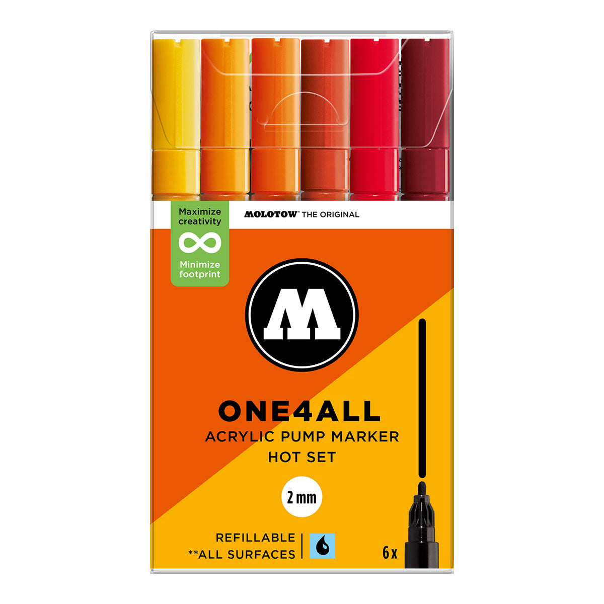 Opaque acrylic marker with a 2 mm nib from Molotow. We offer this marker in many different colours, and all of them are UV-resistant on nearly any surface, while also being quick-drying. The Molotow ONE4ALL 127HS markers refillable and the nib can also be changed. Refills and extra nibs for Molotow and other sizes can be purchased right here.