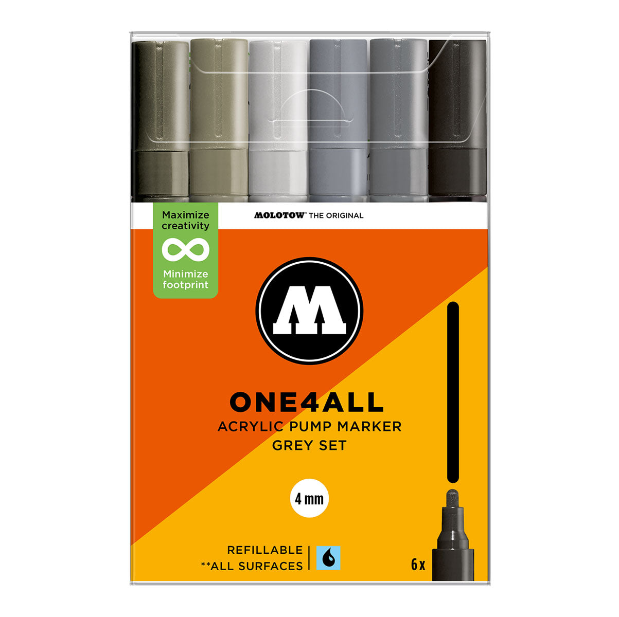 Opaque acrylic marker with a 4 mm nib from Molotow. We offer this marker in many different colours, and all of them are UV-resistant on nearly any surface, while also being quick-drying. The Molotow ONE4ALL 227HS markers refillable and the nib can also be changed. Refills and extra nibs for Molotow and other sizes can be purchased right here.