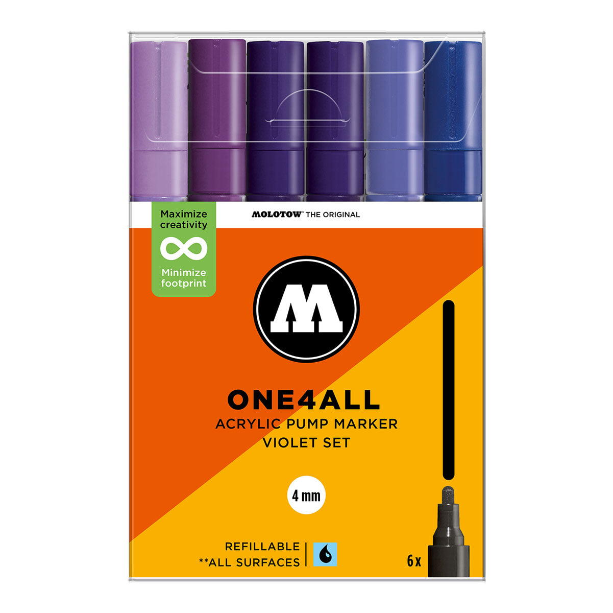 Opaque acrylic marker with a 4 mm nib from Molotow. We offer this marker in many different colours, and all of them are UV-resistant on nearly any surface, while also being quick-drying. The Molotow ONE4ALL 227HS markers refillable and the nib can also be changed. Refills and extra nibs for Molotow and other sizes can be purchased right here.