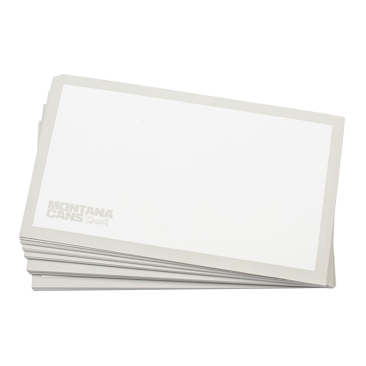 The Montana Eggshell Stickers 50-Pack includes 50 high-quality white eggshell stickers (120 x 70 mm) with a subtle grey border. Perfect for hand styles or public artworks, they can be prepared with any marker or paint. The eggshell material flakes when removal is attempted, leaving most of the sticker on the surface—ideal for getting attention in the urban landscape.