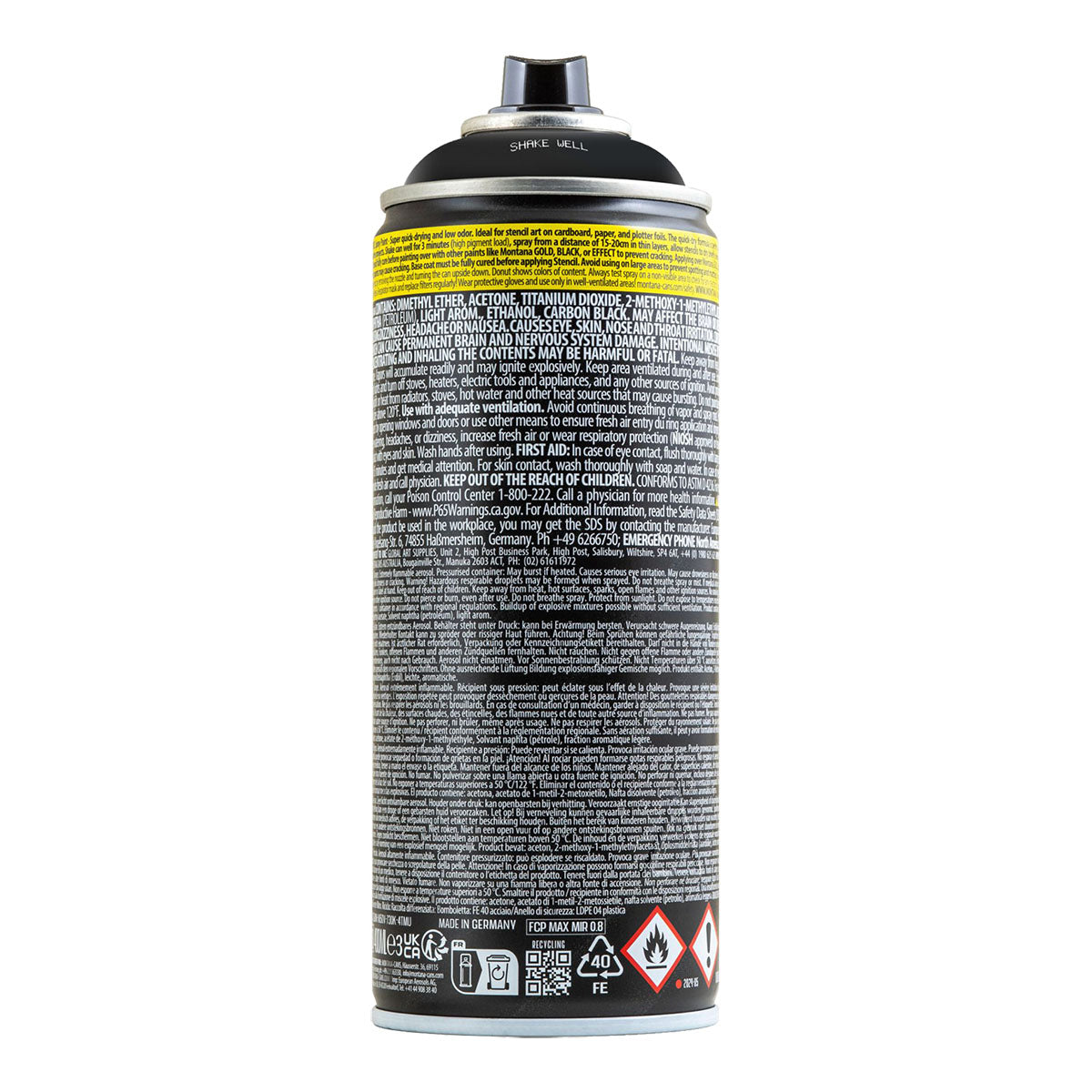 Achieve crisp, clean lines with Montana Stencil Spray 400ml in Black. Specially formulated for stencil techniques, it dries quickly and prevents sticky buildup, keeping your tools clean and workflow efficient. Perfect for paper, cardboard, foil, and plotter work, this spray offers excellent coverage, preventing paint bleeding and ensuring precise designs. Its low-odor formula makes it suitable for indoor use, while fast drying and superior adhesion allow professional results on a variety of surfaces. Equipped with a Flat-Jet Medium cap, it offers smooth control for sharp, clean lines.