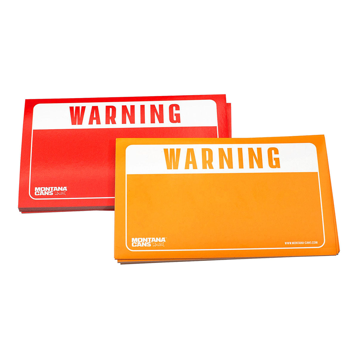 The Montana Warning Stickers 100-Pack includes 100 UV-coated adhesive stickers in 12 x 7 cm format. The pack contains 50 red (Pantone 485C) and 50 yellow (Pantone 137C) stickers, each with a slit on the reverse side for easy removal. These stickers are ideal for decorating, labeling, or adding a bold urban touch to any project.