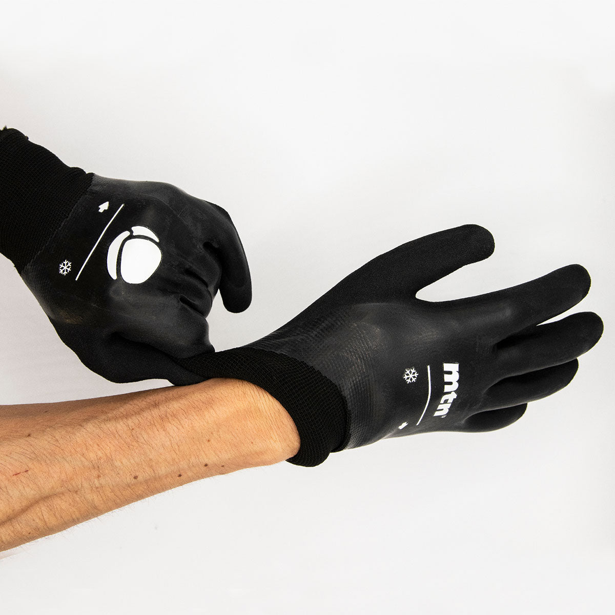 Protective gloves designed for colder temperatures. The MTN PRO winter gloves are made of slightly thicker material with a soft, lined interior. The fingers and palm are dipped in latex, providing extra protection against paint and a better grip. Available in two sizes: Small/Medium and Large/XLarge.