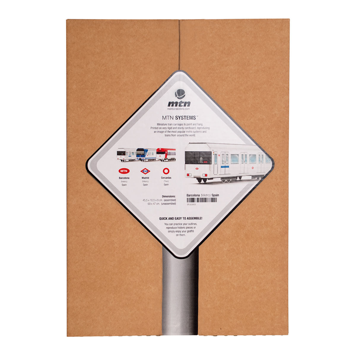 MTN System Barcelona is a miniature model in cardboard that you can paint yourself. Paint a whole car or panel without the risk of getting caught by the police. For best possible results we recommend you use fully covering acrylic pens, which gives the same feeling as with fully covering spray paint. The train will be about 43 cm x 10 cm x 9 cm once it has been folded.