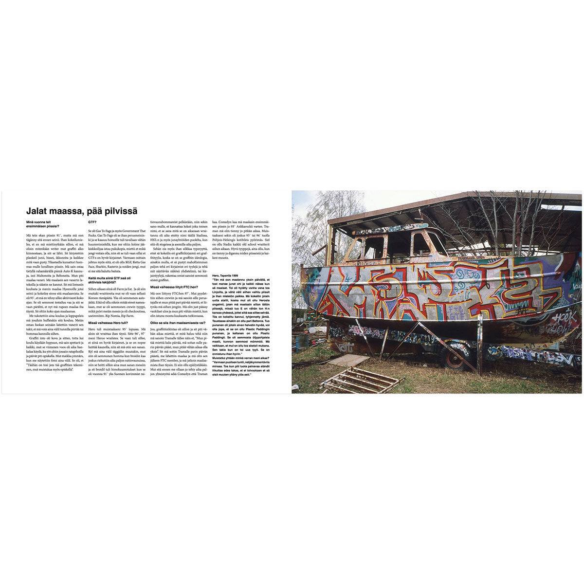 Perhaps the most comprehensive collection of Finnish graffiti history, with loads of pictures from the years 1992-2017 and stories from numerous graffiti artists. The book presents the most pivotal painting spots over the years. It serves as an important documentation of works already lost, as well as how graffiti culture has evolved from subculture to mainstream over the years. All texts in the book are written in Finnish, so be prepared with your phone and Google Translate if you don't know Finnish. Or simply enjoy the amazing collection of pictures!
