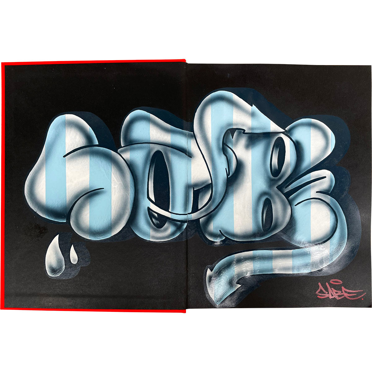 Limited edition SABE – STILL AROUND II book. We made a number of special edition books with red cover and white foil on the cover. Inside you will find a hand painted spread by the artist make each individual book exclusive. We are continuously updating the store with new hand-painted books. A true collectors item.