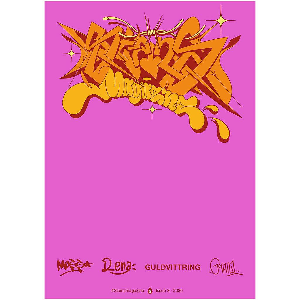 8th issue of Stains Magazine. A graffiti magazine that strictly focuses on Swedish graffiti, presented into freight trains, walls, spraycations, mixed Swedish trains as well as subways and commuter trains from Stockholm. In addition to the usual mix, the issue also includes special features with with Guldvittring, Gyan [MOFO 47K], Rena [SG RYG] and Moss [FUPS BFF FOR RNA]. 84 pages, wrapped in a fresh cover characterized by Waffle [WLC].