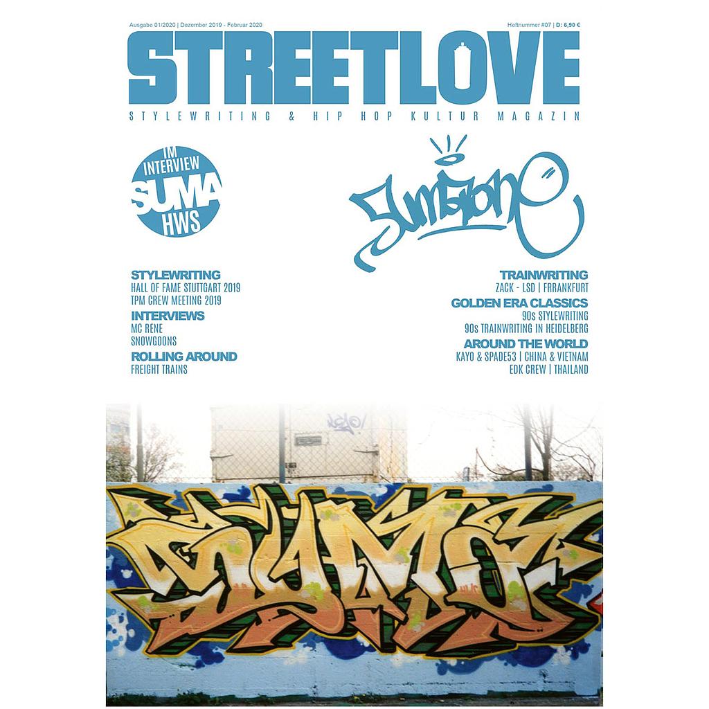German magazine Streetlove number 7 features graffiti writers such as Suma, HWS Crew, Zack, MC Rene, Snowgoons, Kayo, Spade53 and EDK Crew.