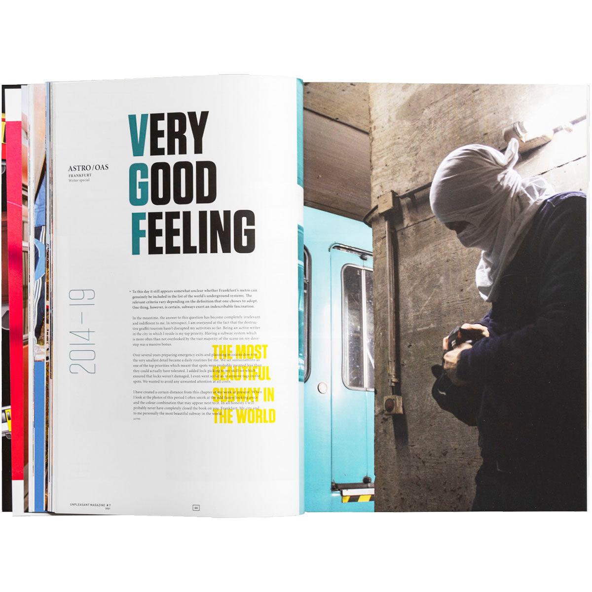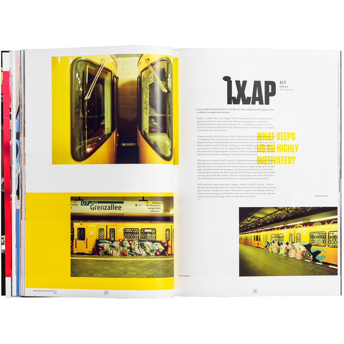 Better late than never, after 3 years of silence we now have issue 7 of the new Unpleasant Magazine. And also this time it is a 100% focus on painted trains and subways across the globe. The special features in this issue are: Aden, Alone, Astro, CVA Crew, Goal, Ixap, Mistery Man, Rush, Skusi, Sphae, Vifl and Wilma.