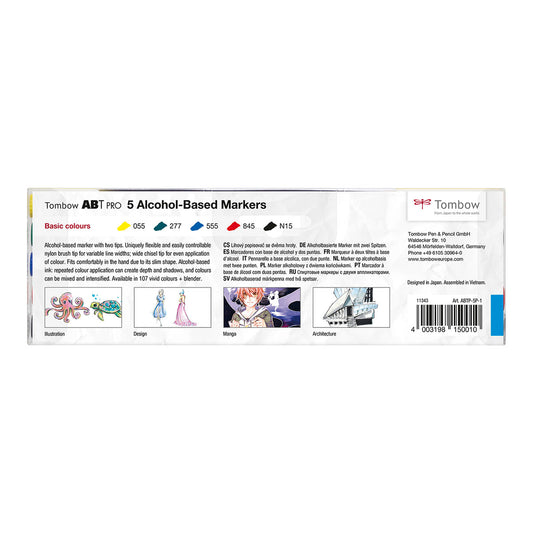 Tombow ABT PRO Dual Brush Pen 5 set, Basic Colours