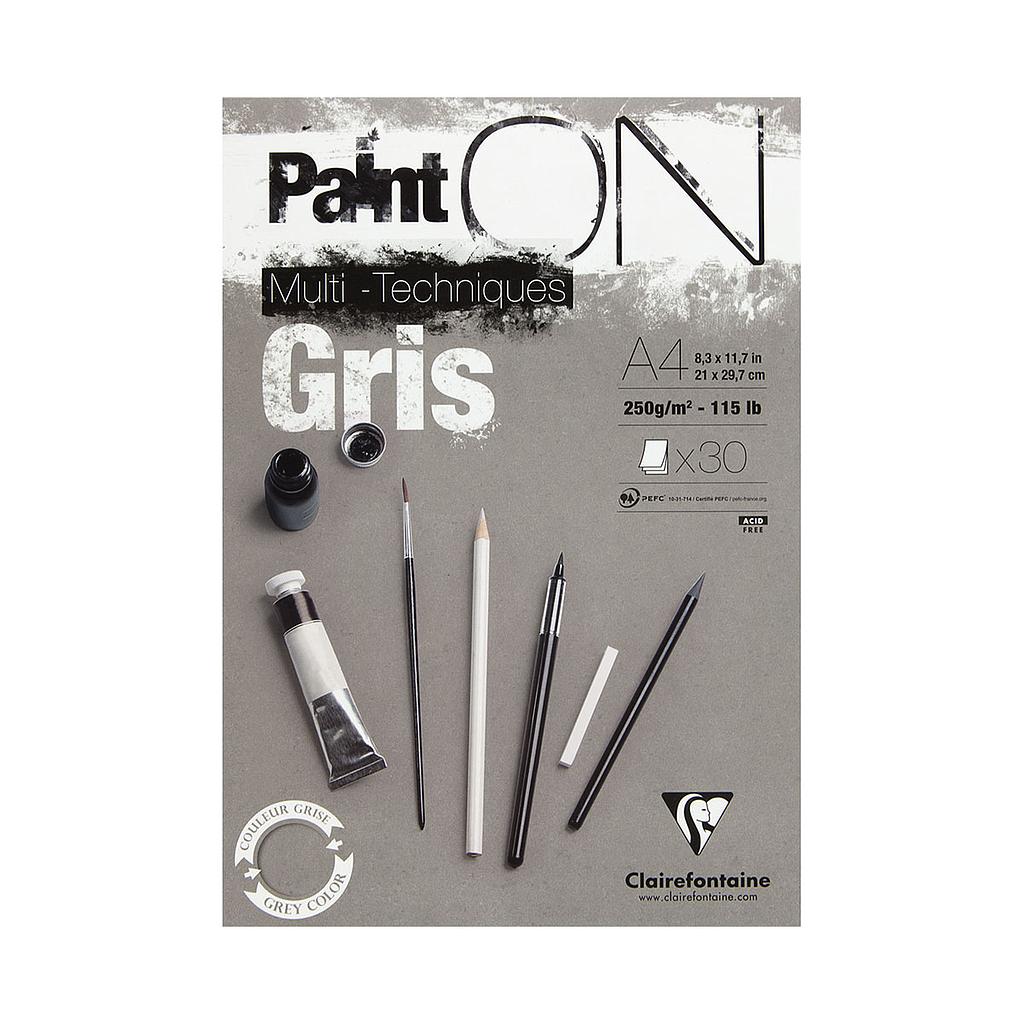 Clairefontaine Paint-ON Multi-Techniques Gris Pad A4 250g 30 sheets