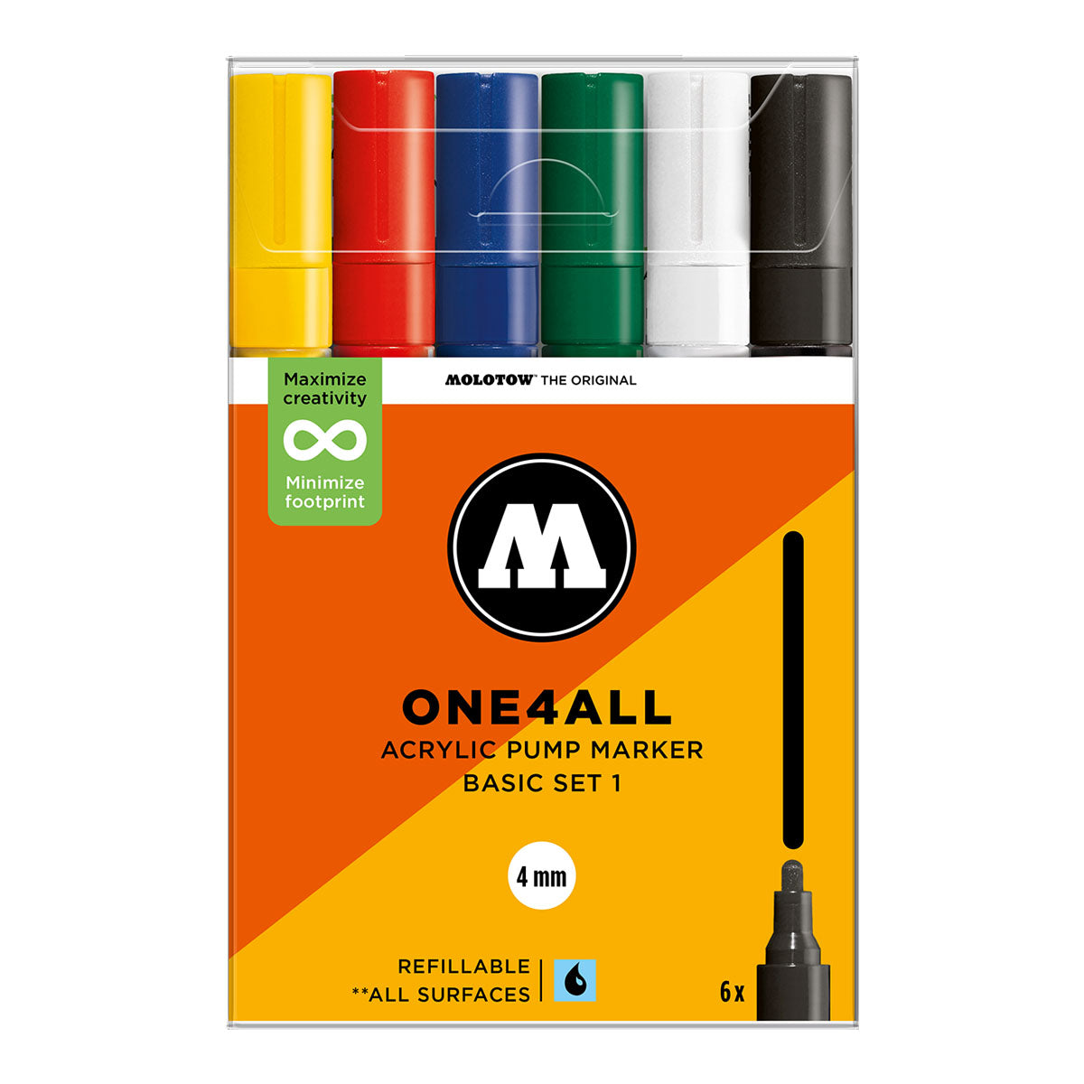Opaque acrylic marker with a 4 mm nib from Molotow. We offer this marker in many different colours, and all of them are UV-resistant on nearly any surface, while also being quick-drying. The Molotow ONE4ALL 227HS markers refillable and the nib can also be changed. Refills and extra nibs for Molotow and other sizes can be purchased right here.