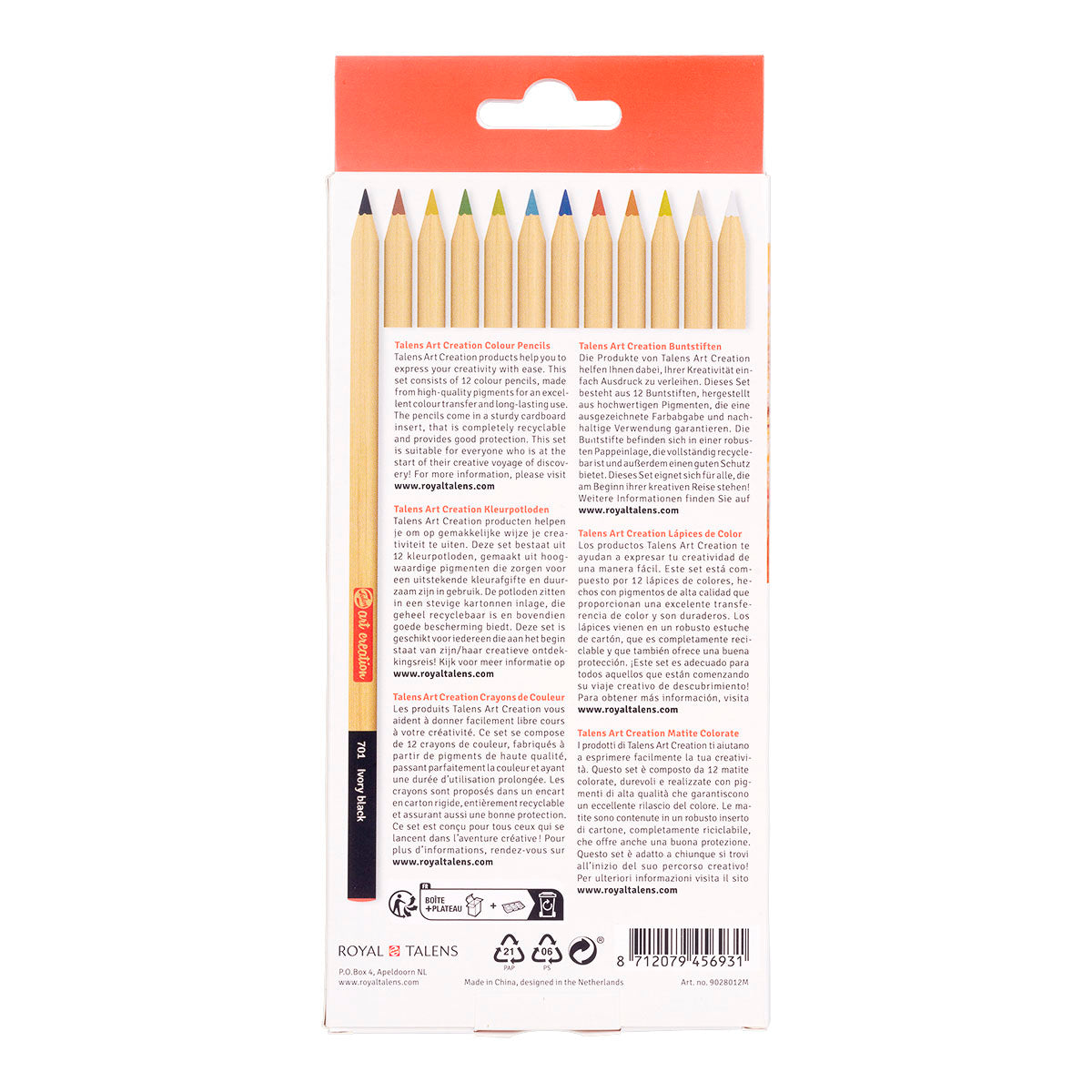Otroligt bra pris på detta 12-pack med färgpennor från Talens Art Creation-serie. Träpennor med färgad topp så du enkelt ser färgerna även om du förvarar dessa i en burk eller pennhållare på skrivbordet. I paketet ingår ett urval av standardfärger inklusive svart. Vi säljer också ett större set med 24 olika Talens Art Creation Färgpennor.