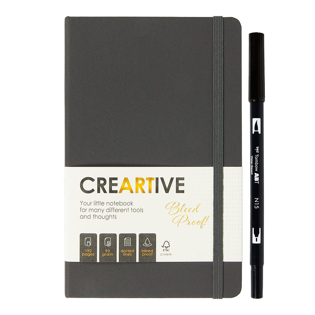 Tombow x Creartive Bleed Proof Bullet Journal 90g, Dotted + Black ABT Dual Brush Pen